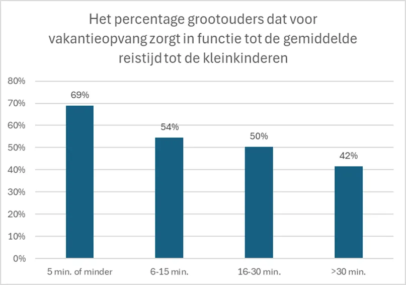 Naast het aantal kleinkinderen, speelt ook de leeftijd van de grootouder een rol. MyFamily stelt vast dat hoe jonger de grootouders zijn, hoe meer dagen ze zich vrijmaken voor hun kleinkinderen. 65-69 jarigen maken zich dertien dagen vrij, terwijl 70-plussers zich acht dagen vrijmaken. Ook de afstand tot waar de kleinkinderen wonen is een factor: hoe dichter, hoe meer dagen de grootouders bijspringen voor vakantieopvang. Van de grootouders die op minder dan vijf minuten van hun kleinkinderen wonen, vangt ongeveer zeven op de tien (69%) hen op tijdens de vakantie. Dit loopt terug tot ongeveer vier op de tien bij grootouders (42%) die op gemiddeld meer dan een half uur van hun kleinkinderen wonen.